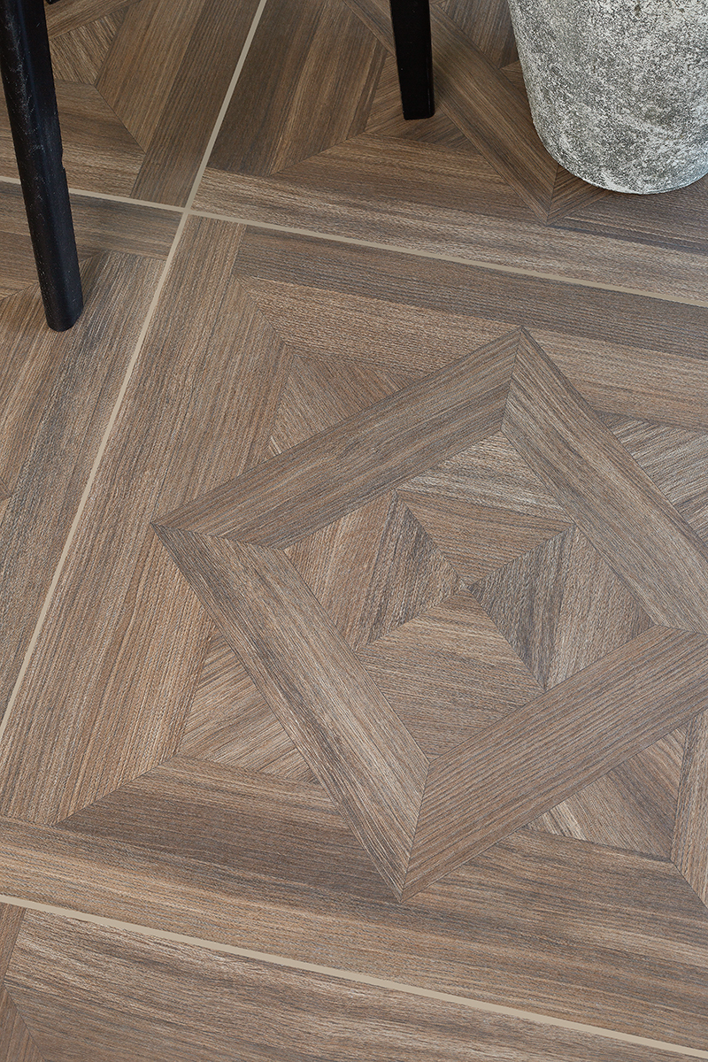 Wood effect tiles offer the beauty of natural wood but with the durability and easy maintenance of porcelain - perfect for busy hallways. From soft oak tones to deeper, rich hues, they bring warmth and character underfoot while standing up to everyday wear, muddy boots, and changing seasons. A practical yet stylish choice for creating a welcoming entrance. The Cranbrook Elm and Cranbrook Walnut offer a versatile parquet wood effect tile available in 610x610 or 900x900, working in different sizes hallways.