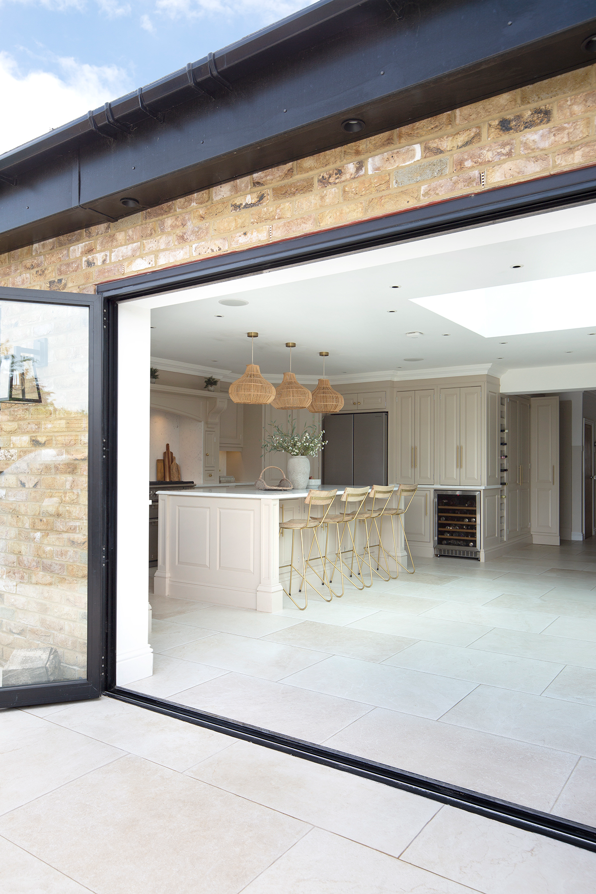 A great idea for natural stone flooring is to opt for matching indoor and outdoor tiles to create the ultimate seamless flow from inside to out. Many limestones are frost resistant and suitable for gardens and exterior use, usually in a thicker 20mm or 30mm tile than internal tiles. Paired with bifold or crittall doors, matching indoor outdoor stone tiles bring the beauty of an outdoor space and garden into your kitchen or open plan living area, perfect for summer days with the doors wide open. A popular option for this is the Dijon Tumbled Limestone Tiles and pavers. Its classic grey tone and delicate fossils details blend seamlessly from indoors to out, with a rustic feel from the aged tumbled finish.