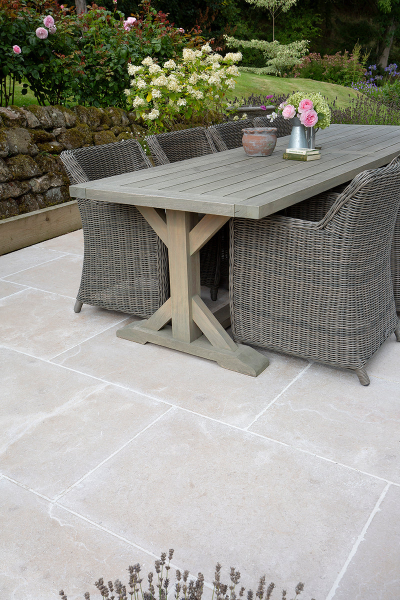 The Tuscany seasoned limestone paving emulates a true rustic and country feel. This textured honey toned stone, features subtle tonal variation as well as rich fossilisation resulting in a characterful and forgiving outdoor limestone tile. From paver to paver, this natural stone can also display a soft flowing movement, which works perfectly across country gardens and patios.