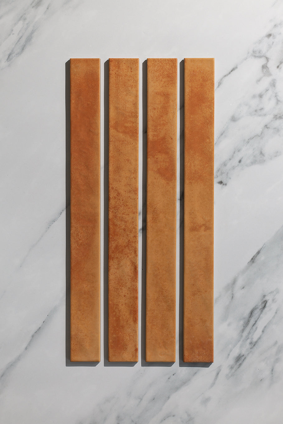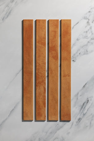 The Patina Cotto is a rich glazed tile with vibrant orange tonal variations, in a unique elongated metro tile format. The Patina range of glossy, artisan tiles offers a selection of five different pigments, that emulate a hand glazed tile. Perfectly suited for bathroom tiles, shower tiles and kitchen splashback tiles.