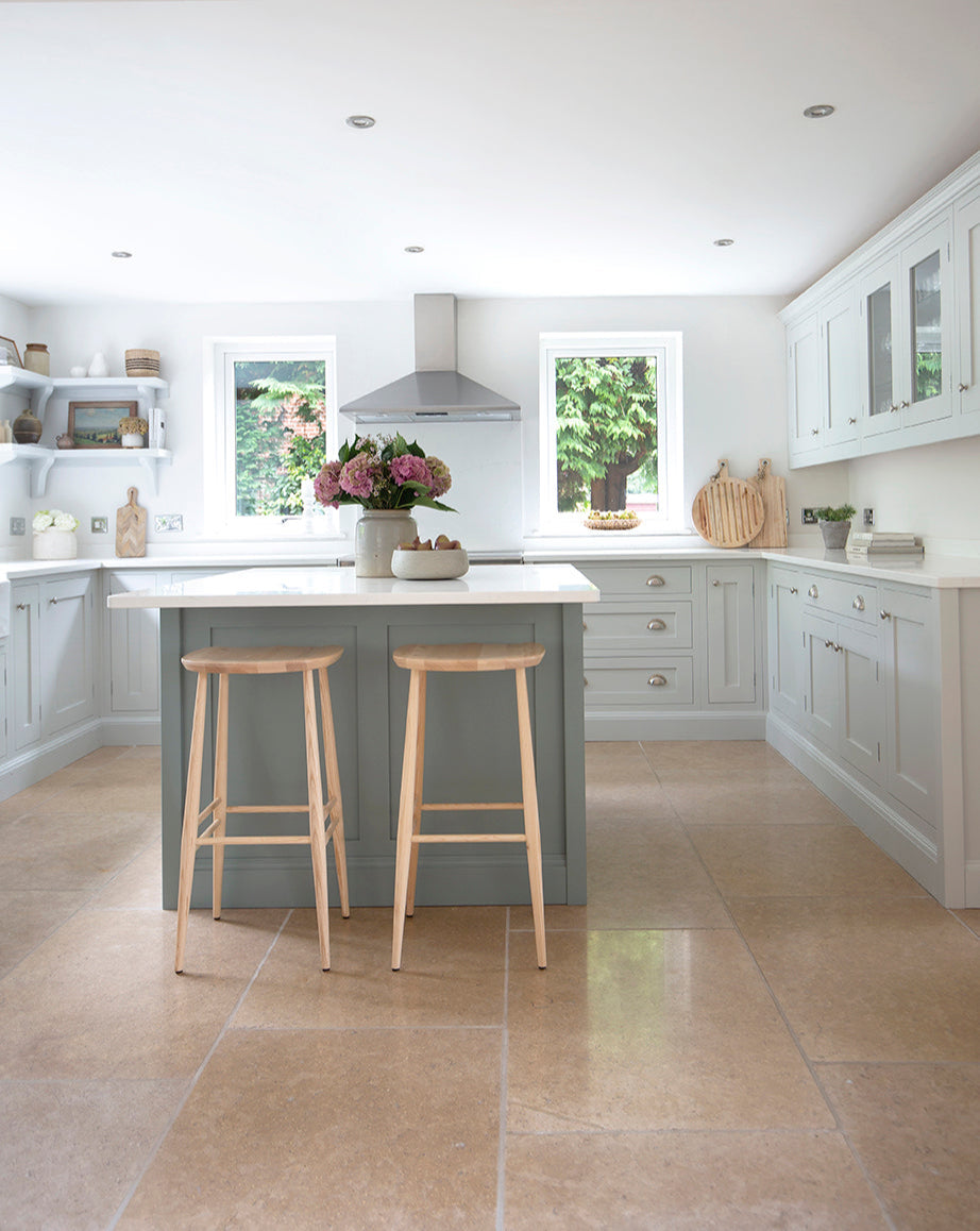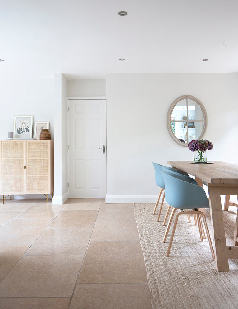 We recommend using both dry and wet methods to keep your natural stone tiles looking their best. Sweeping and vacuuming (with the soft attachment) is great to pick up crumbs from the floor, whilst an occasional mop will keep your floor hygienic and lift light stains. We recommend using Lithofin Wash & Clean for frequent cleaning, and Lithofin Power Clean for intensive cleans.