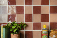 Farini Cinnamon is a rich burnt orange to red in a gloss finish inspired by Zellige tiles, perfect for kitchen splashbacks and bathroom wall tiles.
