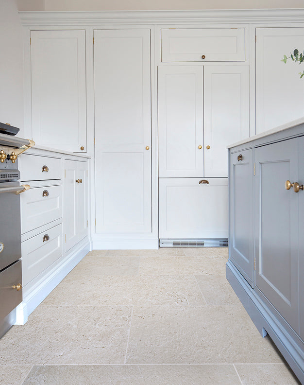 The Orwell Natural porcelain tiles are a beautifully realistic stone effect tiles in a soft beige shade. This porcelain features flowing veining and detail on the face of each tile, replicating the look of real stone. Available in a large format tile size, perfect for open plan kitchens and groundfloors.